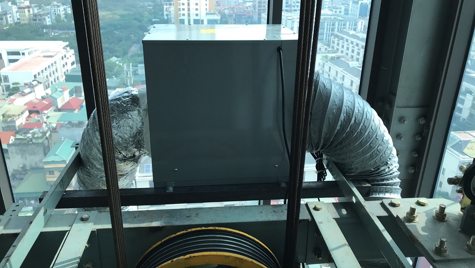 – Sử dụng loại điều hoà chuyên dùng cho thang máy bởi thang máy hoạt động, di chuyển liên tục nếu sử dụng điều hoà thong thường sẽ không mang lại hiệu quả cao. Với đầy đủ tính năng của một chiếc điều hoà 2 chiều, điều hoà chuyên dùng cho thang máy được lắp đặt trên nóc cabin sẽ mang tới hiệu quả làm mát cao, mang tới không khí trong lành, khô ráo cho không gian thang máy.