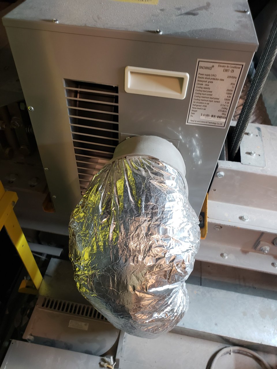 Điều hòa không khí chuyên dụng dành cho thang máy giúp việc trao đổi không khí giữa cabin với môi trường bên ngoài nhanh hơn nhiều so với hệ thống quạt gió. Vì thế không khí trong thang máy thoáng mát nhanh chóng. Đồng thời tuổi thọ thang máy cũng được tăng lên.